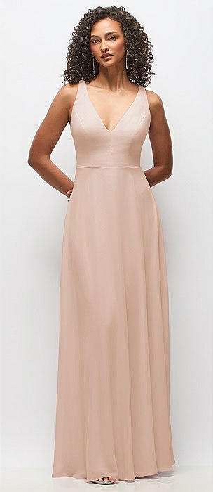 Deep V-Neck Chiffon Maxi Dress in cameo