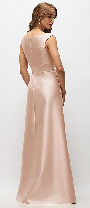 Sleeveless Keyhole Back Satin Maxi Dress in cameo