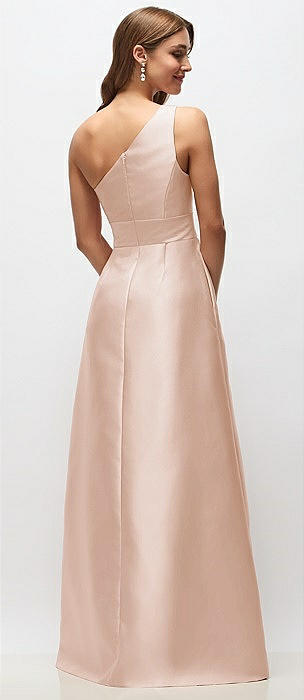Draped One-Shoulder Satin Maxi Dress with Pockets in cameo