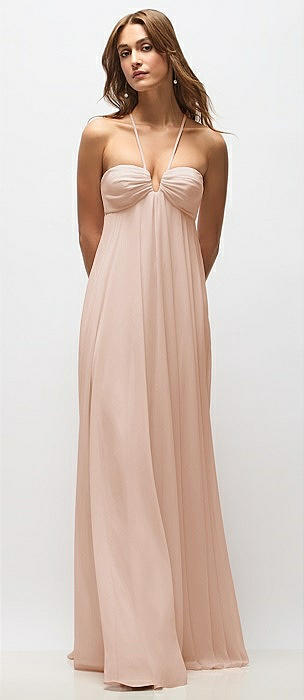 Empire Waist Chiffon Halter Maxi Dress with Convertible Spaghetti Straps in cameo