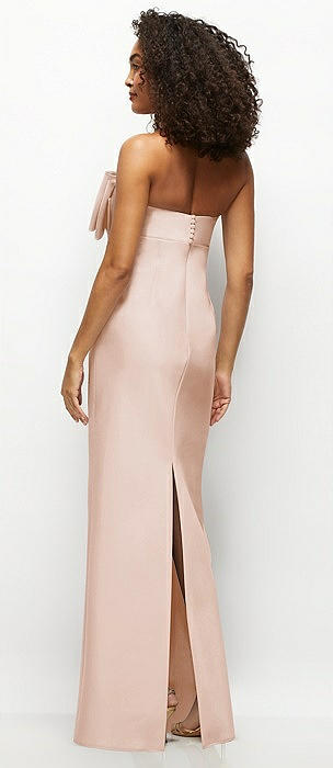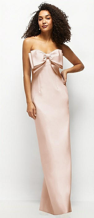 Strapless Satin Column Maxi Dress with Oversized Handcrafted Bow in cameo