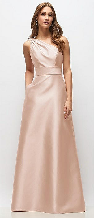 Draped One-Shoulder Satin Maxi Dress with Pockets in cameo