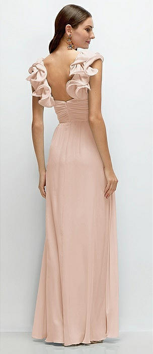 Dramatic Ruffle Edge Strap Chiffon Maxi Dress in cameo