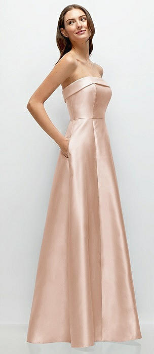 Strapless Bias Cuff Bodice Satin Gown with Pockets in cameo