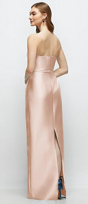 Strapless Satin Column Dress with Removeable Watteau Train in cameo