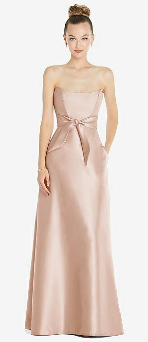 Strapless Notch Satin Gown with Pockets in cameo