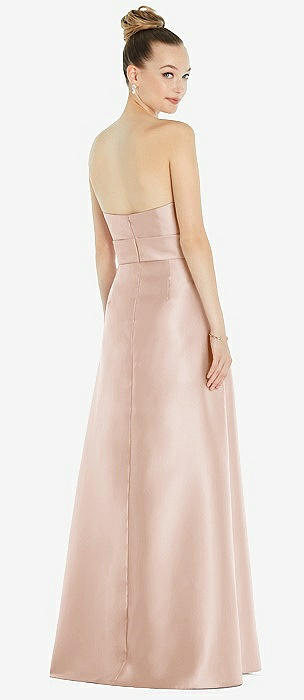Strapless Satin High Low Dress with Pockets in cameo
