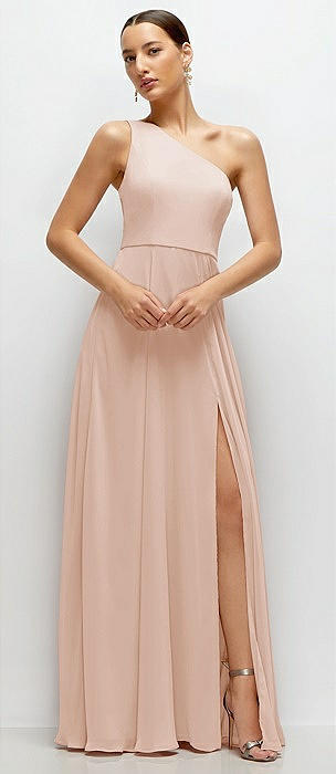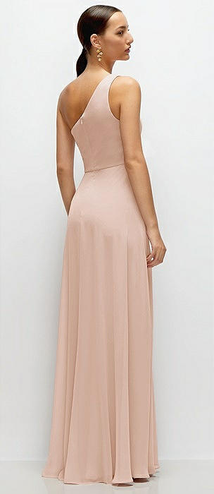 Chiffon One-Shoulder Maxi Dress with Circle Skirt in cameo