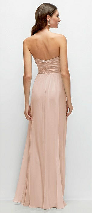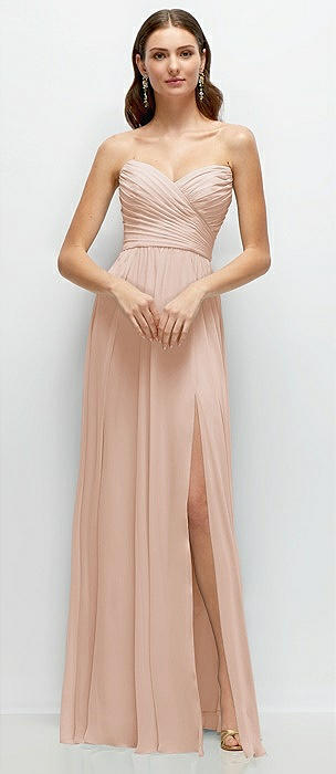 Strapless Pleated Surplice Chiffon Maxi Dress with A-Line Skirt in cameo