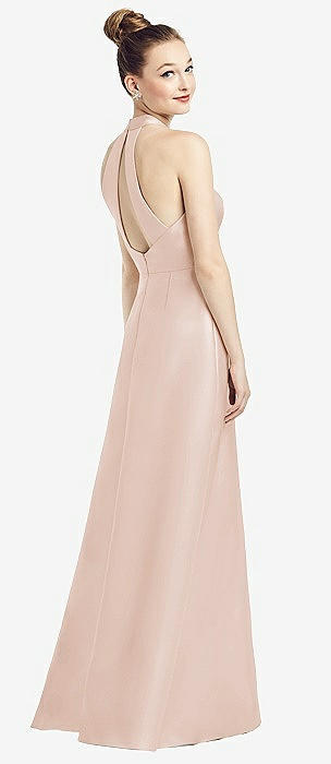 Stand Collar Halter Maxi Dress with Criss Cross Open-Back in cameo