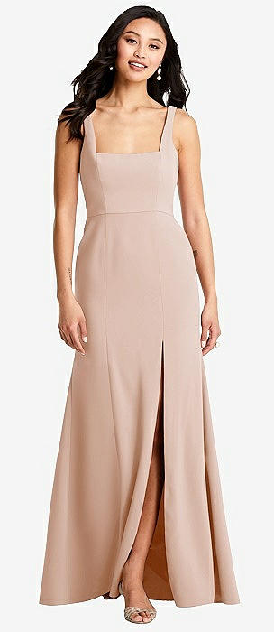Faux Wrap Criss Cross Back Maxi Dress with Adjustable Straps in cameo
