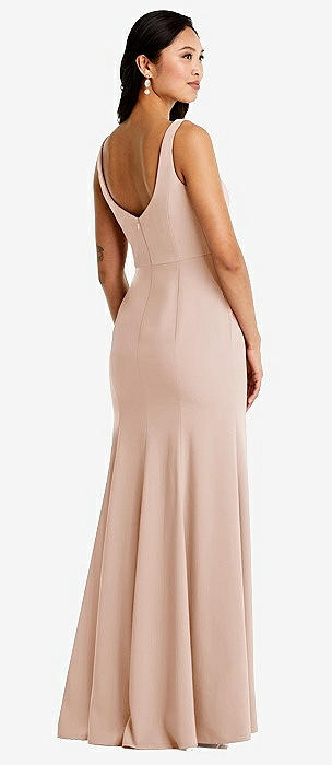 V-Neck Full Skirt Satin Maxi Dress in cameo