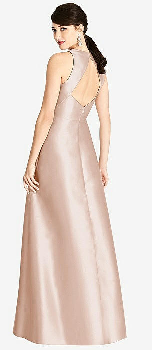 Sleeveless Open-Back Satin A-Line Dress in cameo