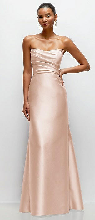 Strapless Cat-Eye Draped Bodice Satin Tumpet Dress in cameo