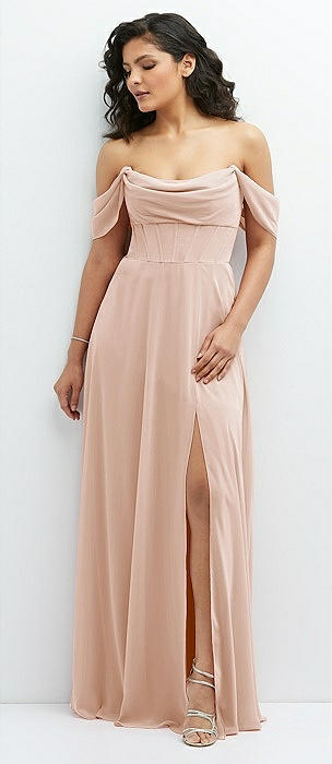 Chiffon Corset Maxi Dress with Removable Off-the-Shoulder Swags
