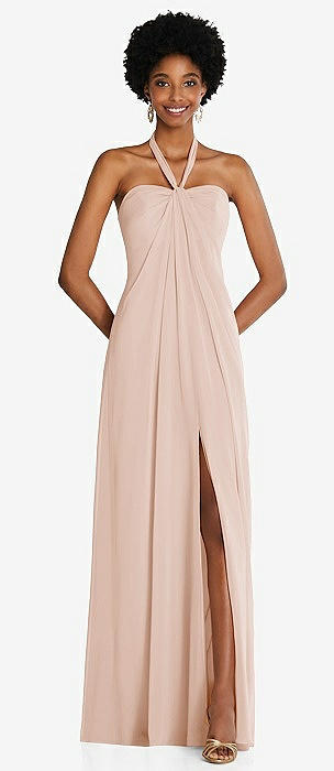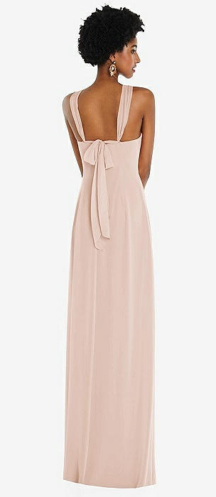 Chiffon Corset Maxi Dress with Removable Off-the-Shoulder Swags in cameo