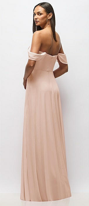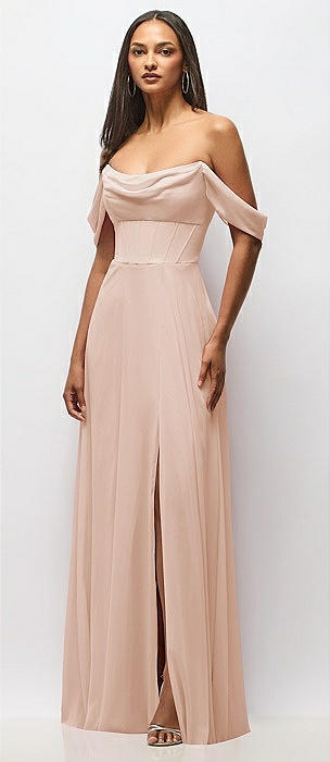 Off-the-Shoulder Basque Corset Chiffon Maxi Dress in cameo
