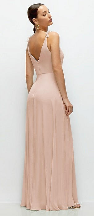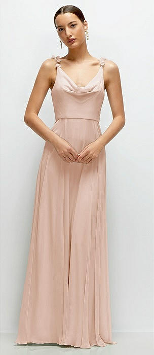 Cowl Neck Chiffon Maxi Dress with Hand-Worked Petal Straps in cameo