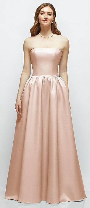 Strapless Basque Drop Waist Chiffon Maxi Dress with Shirred Skirt in cameo