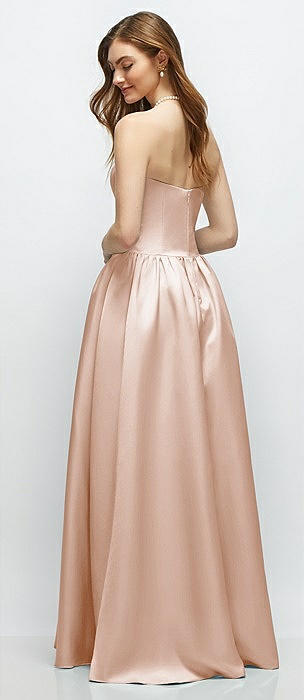 Scoop Neck Drop Basque Skirt Satin Maxi Dress with Pockets in cameo