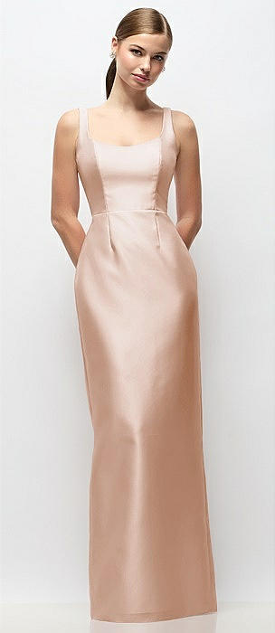 Scoop Neck Satin Column Maxi Dress in cameo