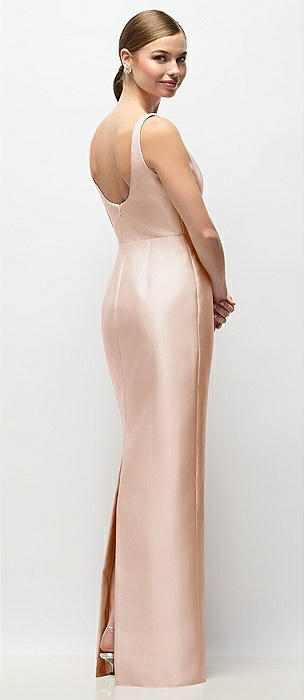Scoop Neck Satin Column Maxi Dress in cameo