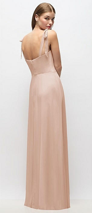Tie-Shoulder Chiffon Maxi Dress with Front Slit in cameo