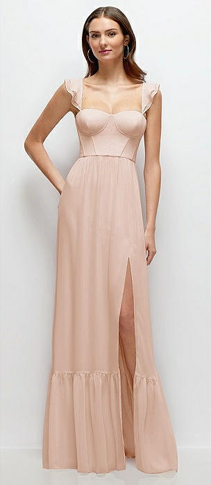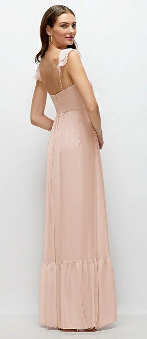 Ruffle Strap Chiffon Bustier Maxi Dress with Ruffle Hem A-Line Skirt