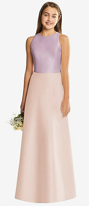 Spaghetti Strap Satin Junior Bridesmaid Dress with Mini Sash