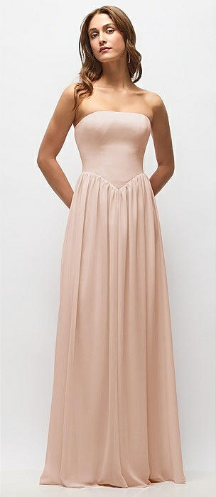 Strapless Basque Drop Waist Chiffon Maxi Dress with Shirred Skirt in cameo