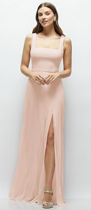 Square Neck Chiffon Maxi Dress with Circle Skirt in cameo