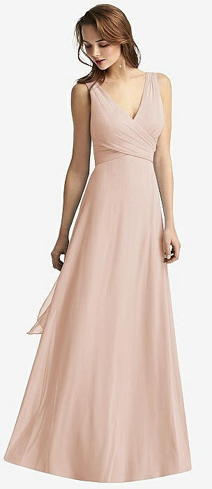 Sleeveless V-Neck Chiffon Wrap Dress in cameo