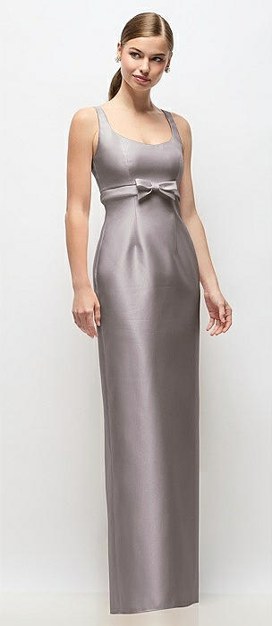 Scoop Neck Satin Column Maxi Dress with Bow at Empire Waist in cashmere gray