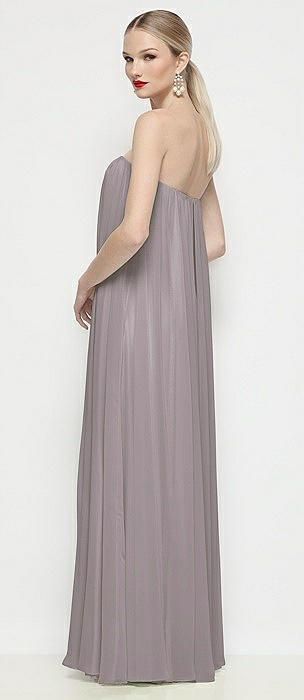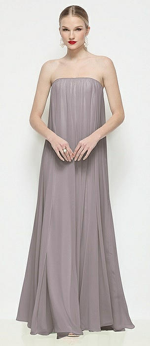 Strapless Shirred Chiffon Trapeze Maxi Dress in cashmere gray