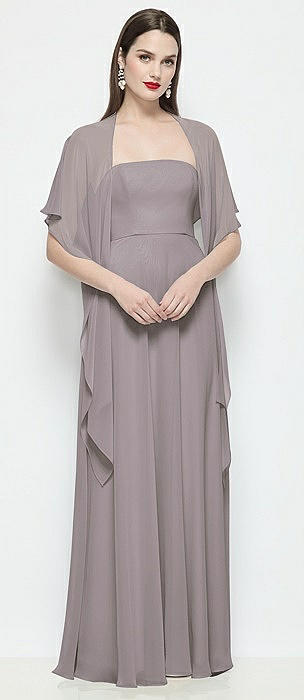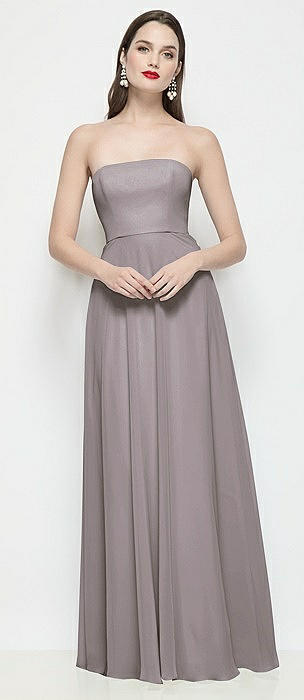 Strapless Chiffon Maxi Dress with Soft Circle Skirt in cashmere gray