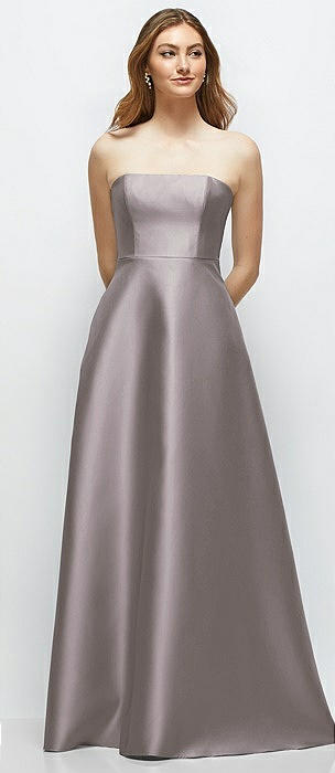 Strapless Bias Cuff Bodice Satin Gown with Pockets in cashmere gray