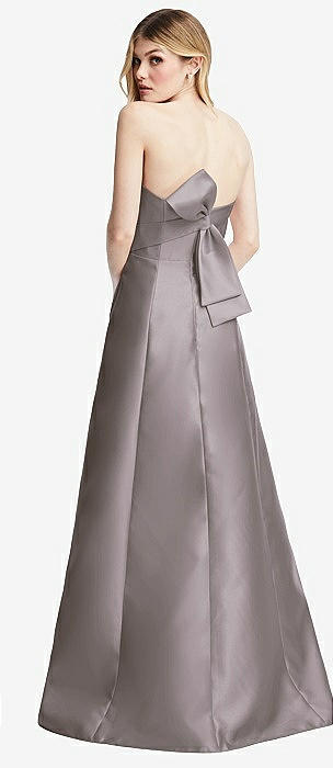 Strapless A-line Satin Gown with Modern Bow Detail in cashmere gray