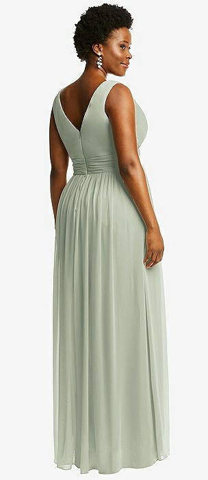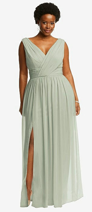Sleeveless Draped Chiffon Maxi Dress with Front Slit