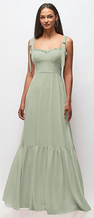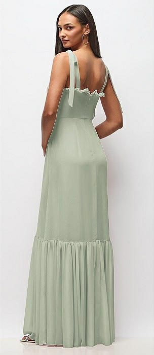 Bustier-Style Chiffon Tiered Ruffle Maxi Dress with Adjustable Straps in celadon