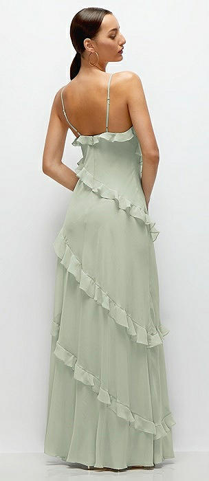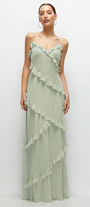 Asymmetrical Ruffle Chiffon Bias Slip Maxi Dress in celadon