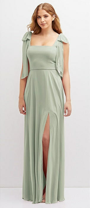 Bow Shoulder Square Neck Chiffon Maxi Dress in celadon