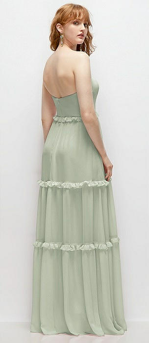 Strapless Chiffon Maxi Dress with Tiered Micro Ruffle Full Skirt in celadon