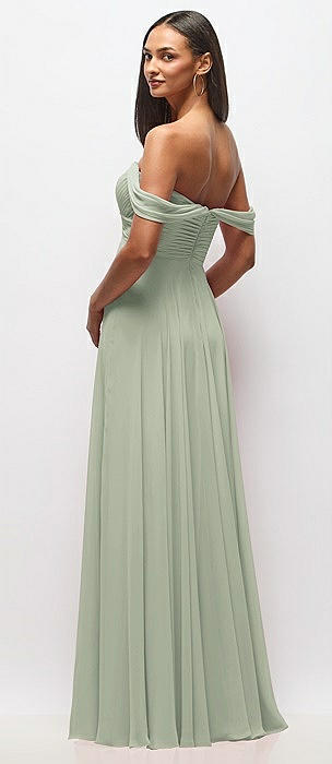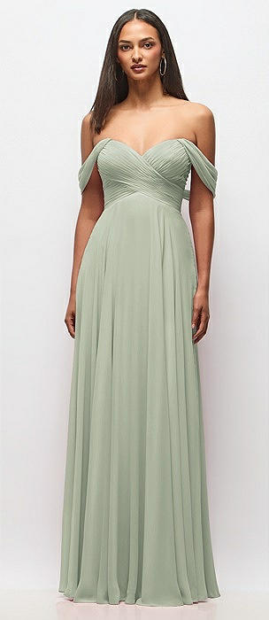 Off-the-Shoulder Draped Chiffon Maxi Dress in celadon