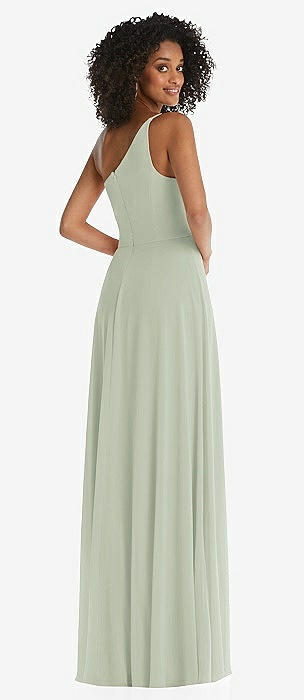 Chiffon One-Shoulder Maxi Dress with Circle Skirt in celadon