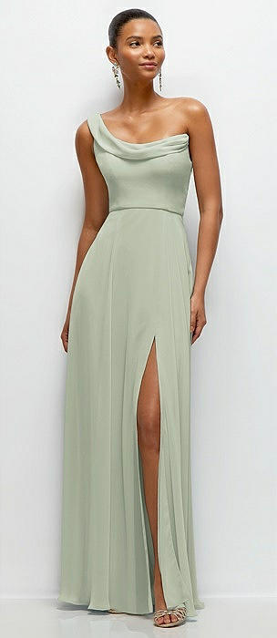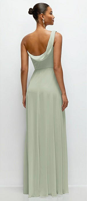 Chiffon One-Shoulder Maxi Dress with Draped Cowl Neckline in celadon