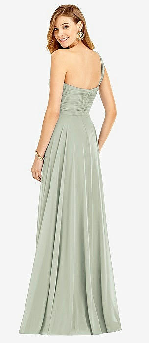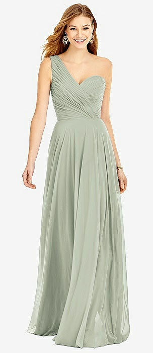 One-Shoulder Draped Chiffon Maxi Dress - Dani in celadon
