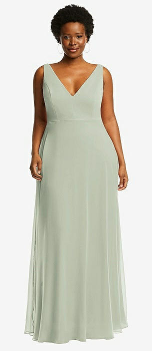 Deep V-Neck Chiffon Maxi Dress in celadon
