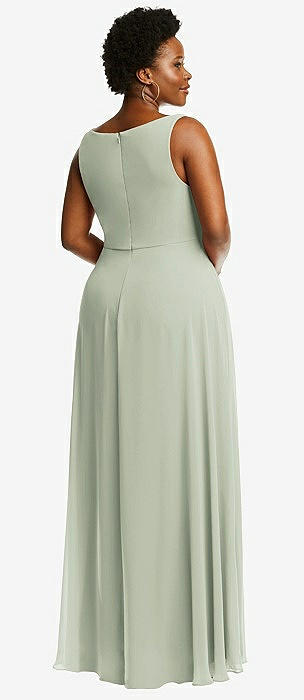 Sleeveless V-Neck Chiffon Wrap Dress in celadon