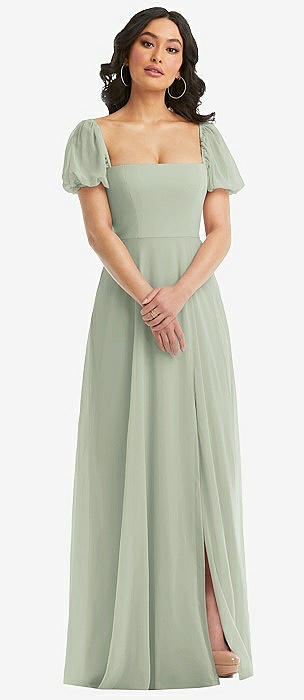 Bow Shoulder Square Neck Chiffon Maxi Dress in celadon