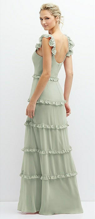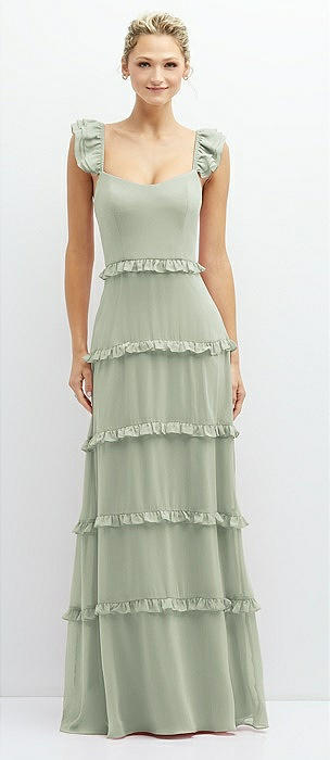 Tiered Chiffon Maxi A-line Dress with Convertible Ruffle Straps in celadon